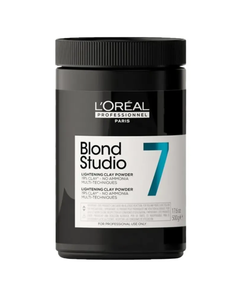 Clay Blond Studio 7 es un decolorante profesional en polvo azul formulado con 19% de arcilla, diseñado para proporcionar un aclarado natural, constante y altamente controlado. Su avanzada tecnología sin amoniaco permite obtener un rubio a medida, respetando la fibra capilar y garantizando resultados precisos y seguros durante todo el proceso técnico.