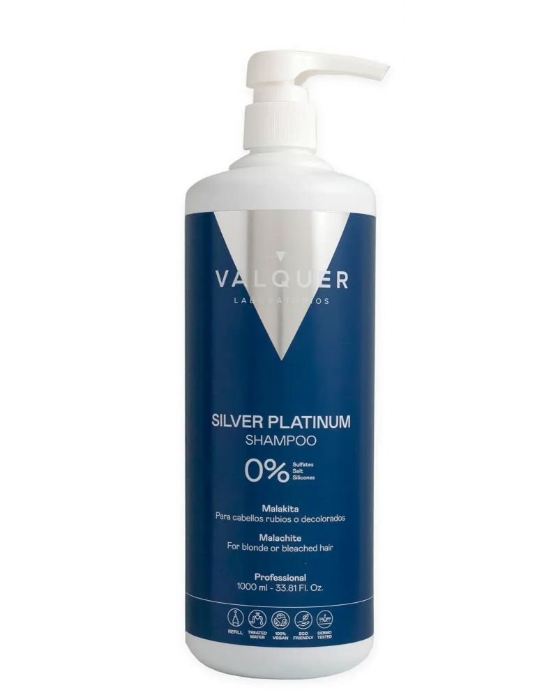 El Champú Silver Platinum de Valquer es un champú matizante especialmente formulado para cabellos decolorados, blancos, grises o plata, diseñado para neutralizar los tonos amarillentos o anaranjados no deseados y mantener un color frío, limpio y luminoso.