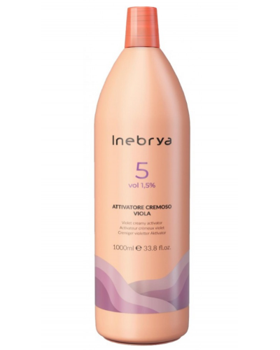 El Violet Creamy Activator 5 Vol de Inebrya es un activador cremoso profesional diseñado para neutralizar los matices cálidos no deseados gracias a su pigmento violeta. Su fórmula suave con bajo porcentaje de peróxido de hidrógeno asegura una acción eficaz sin dañar la estructura capilar, garantizando resultados uniformes y delicados.