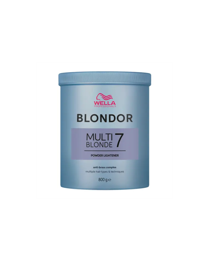 Blondor Multi Blonde Powder es el polvo decolorante azul más icónico de Wella Professionals, reconocido mundialmente por su aclarado fiable, controlado y uniforme. Diseñado para ofrecer resultados profesionales, permite aclarar el cabello hasta 7 niveles, adaptándose a todas las técnicas de aclarado, desde mechas suaves hasta transformaciones rubias intensas.