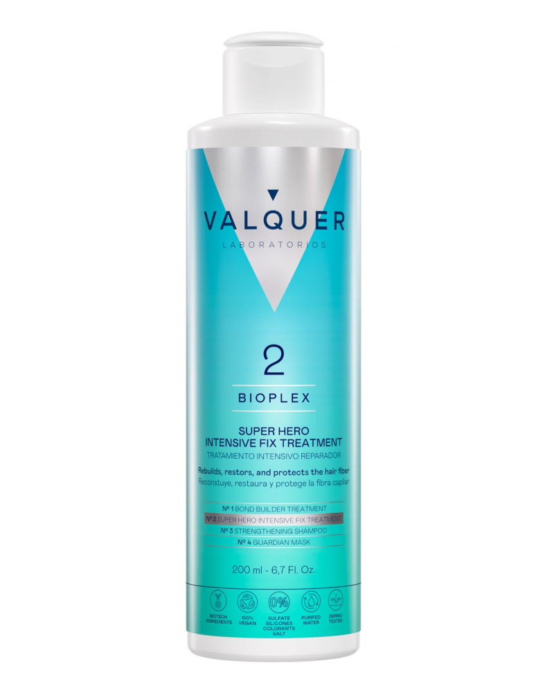 VALQUER BIOPLEX Tratamiento Intensivo Nº2 es el segundo paso del sistema profesional Bioplex, diseñado para ofrecer una reparación profunda e inteligente en cabellos severamente dañados.